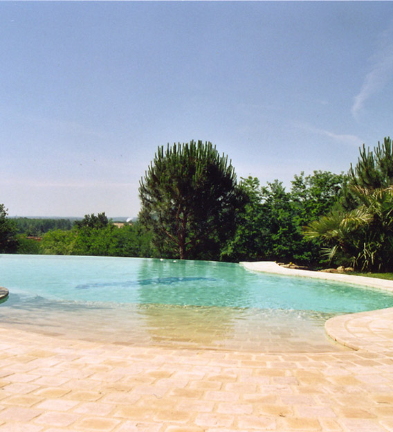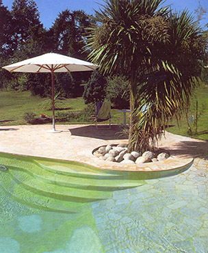 Élégante et noble, elle se décline sous plusieurs formes, toutes capables de magnifier votre piscine. Nous retiendrons en particulier le granit, le grès et l’ardoise qui apportent une touche d’authenticité et un cachet chaleureux à la terrasse. Le choix de la pierre naturelle à utiliser peut être influencé par votre région d’habitation. Il est aussi possible de tailler et ciseler votre terrasse à même la roche pour un rendu naturel plus prononcé.
