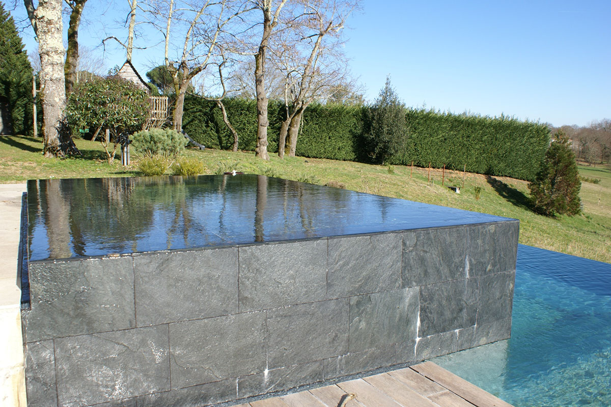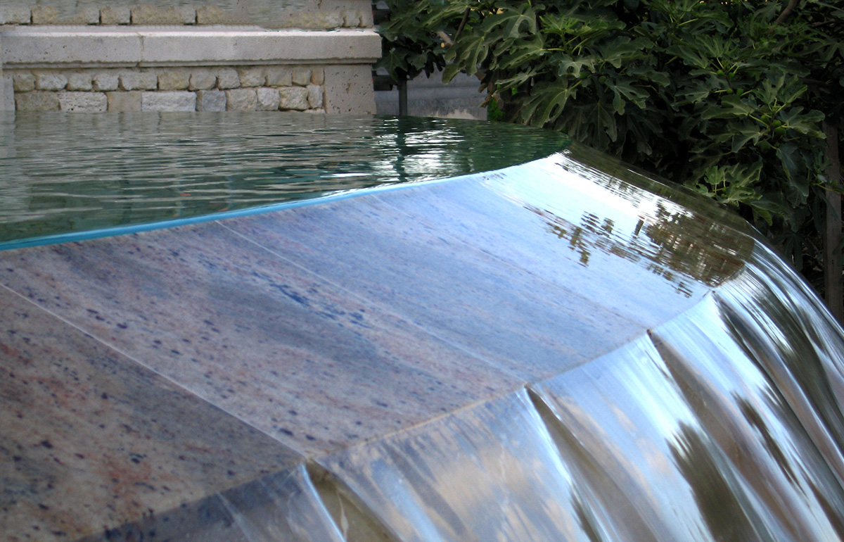 Le mur de débordement qui laisse passer les lames d’eau doit aussi être parfaitement horizontal. Cela nécessite une précision millimétrique que seule une expertise comme la nôtre peut apporter.