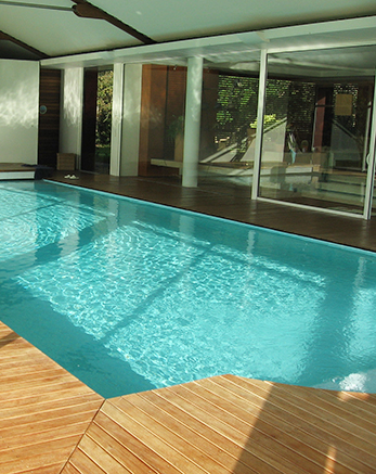 Le premier atout de la piscine intérieure, c'est que vous allez pouvoir vous baigner tout au long de l'année dans votre bassin chauffé, sans craindre les conditions atmosphériques extérieures. En outre, cet espace devient un lieu de vie à part entière que vous pourrez aménager à votre convenance et pour un plus grand confort avec des meubles, des appareils sportifs, etc.
